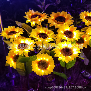 屋外の太陽エネルギーのヒマワリの花灯の庭の花園の芝生は明かりを飾って景観の植物の雰囲気の明かりをシミュレーションします。