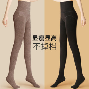 秋冬の女性用ハイウエストパンスト、足踏み用ベルベットボトムソックス、圧力痩身ソックス、素足用厚手ボトムウォームパンツ
