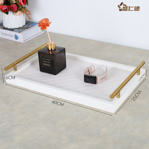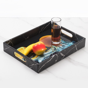 底部アクリル印刷手穴トレイ黒-色大理石紋-40.5*30.5*6.5cm