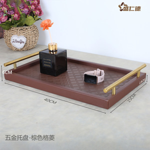 ハードウェアゴールドリムトレイ - ブラウンダイヤモンドパターン
