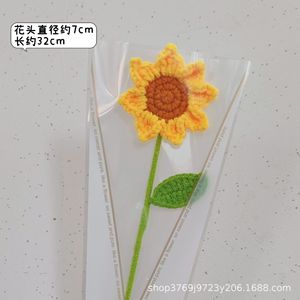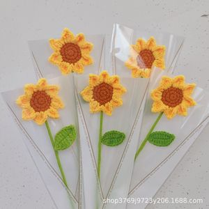 完成品の純粋な手作りのかぎ針編みの小さいヒマワリの花束の祝日の贈り物は花の永遠の花の置物の卸売りをシミュレーションします。
