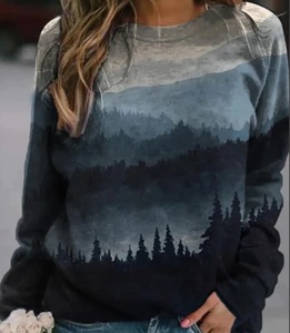 2025年越境在庫あり、アマゾンで人気の欧米風トップス、秋冬用裏地付きカジュアルプリントスリムフィットレディーススウェットシャツ