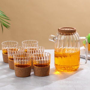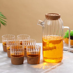 メーカー卸売高ホウケイ酸ガラスクリエイティブコールドケトルホームリビングルームウォーターカップセット大容量ストライプコールドケトル