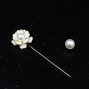 小香風一字ピンブローチ女ツバキ真珠胸花日韓気質コート
