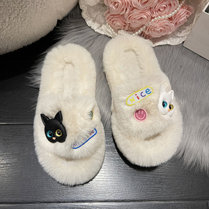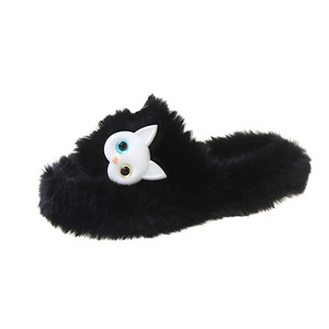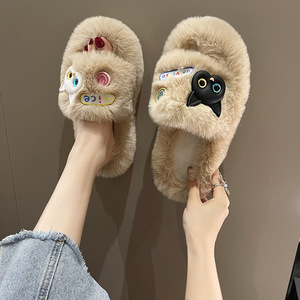 韓国版のかわいいアニメの毛のスリッパの女性は秋の新型の毛の靴のinsの日常の厚い底の毛を着ます。