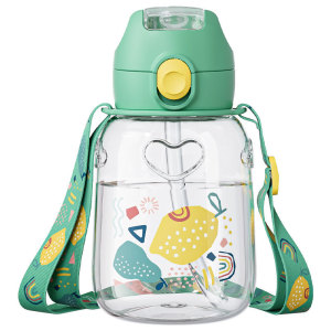 学生高颜値プラスチックカップ子供シリコンストローカップスケール学飲カップ携帯アニメtritanカップ