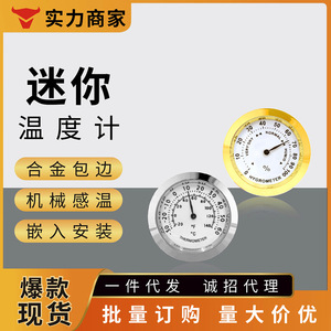 卸売埋め込み式温湿度計ミニ円形防湿箱シガーボックス湿度計ギター機械温湿度計