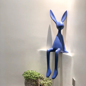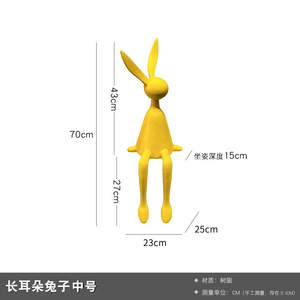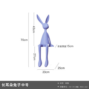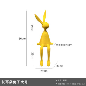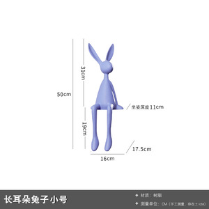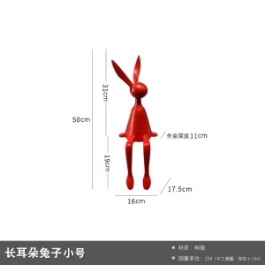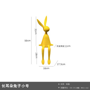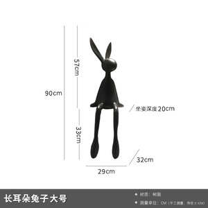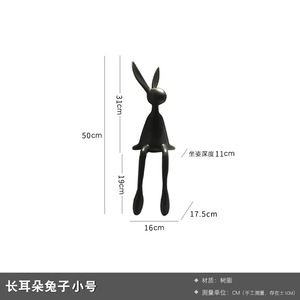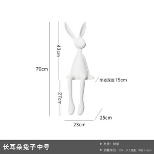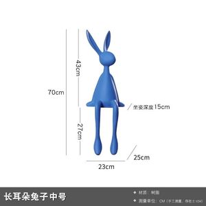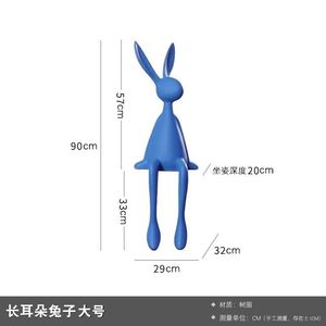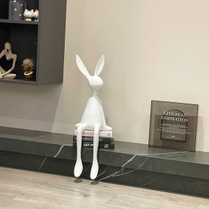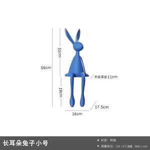 きわめてシンプルな北欧の長い耳の大きい白いウサギの彫刻の置物のサンプルの部屋のリビングルームのテレビの棚の酒場の壁の棚の装飾品