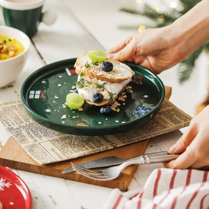創意新品クリスマス陶磁器食器セット祭りプレゼント家庭用釉薬下彩ステーキ皿口杯茶碗セット