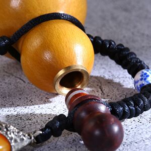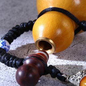 天然の開口部に酒瓢箪文を包んで手を捻ってペンダントを飾る