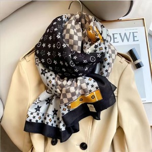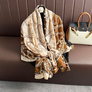ドロップシッピング2024ライブブロードキャスト韓国版プリントコットンとリネンのスカーフ、ヨーロッパとアメリカのクラシックな秋冬の暖かいネックスカーフ、ショール付き