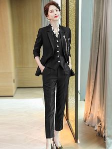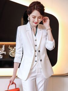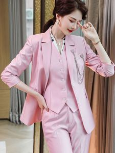 ファッション気質ピンク高級スーツジャケット2022秋冬優雅ベストスーツ三点セット韓国版婦人服