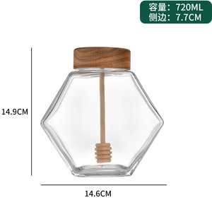 720ml (蜂蜜1000g入り) 無垢材の蓋、透明。