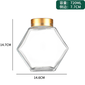 720ml (蜂蜜1000g入り) プラスチックゴールドキャップ、透明
