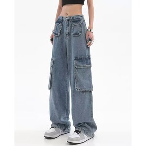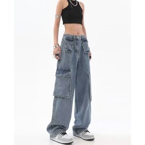 アメリカのヒップホップのギャルの工装のジーパンの女性の秋冬の新型の2022高腰のまっすぐな筒はゆったりしていて痩せています。