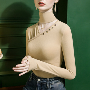 毛の高い襟の底のシャツの女性の透かし彫りのデザイン感の大衆の2022秋冬の中で上着の冬の首の襟のtシャツを掛けます。