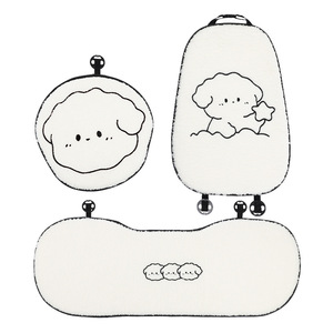 ぬいぐるみの黒と白の犬のヘッドレスト