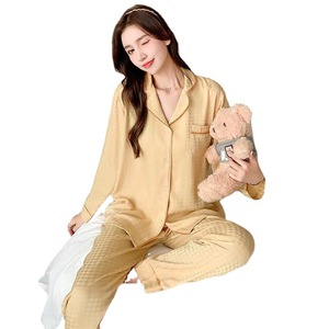 パジャマ女性春秋タイプの氷糸長袖ジャカード千鳥格家庭服夏の薄いエアコン服セット工場