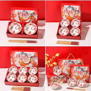 大吉イタリア碗箸セット大展宏兎碗礼箱陶磁器食器青花磁器碗セット碗卸売り小プレゼント