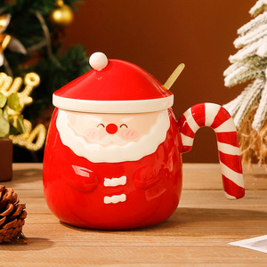 クリエイティブ手描きサンタクロース陶磁器カップネット赤かわいい家庭用蓋付きスプーン付きマグカップ大容量水カップ