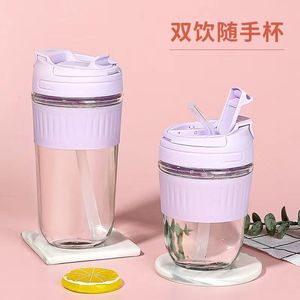 新商品のマカロン色のグラスは携帯してお茶のコップを随行して、手持ちのストローの双飲のコーヒーカップの卸売りの贈り物を持ちます。