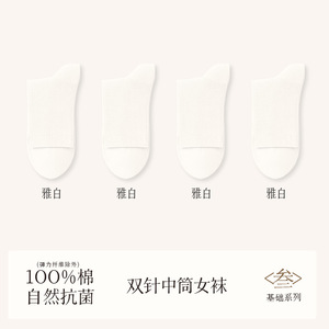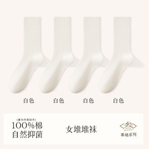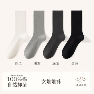 女性用純綿ミドル丈ソックス、諸暨ソックス卸売、ロングソックス、春秋用100%綿パイルソックス、ホワイト産後ソックス