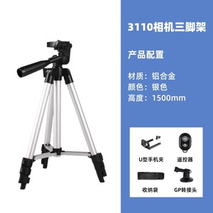 【1500mmタイプシルバー】三脚 + 携帯クリップ + 収納袋 + リモコン + アダプター