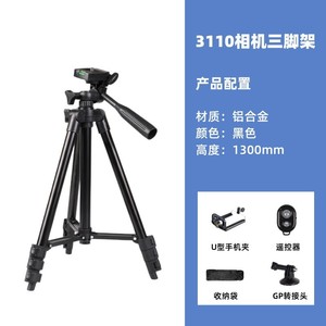 【1300mmタイプブラック】三脚 + 携帯クリップ + 収納袋 + リモコン + アダプター