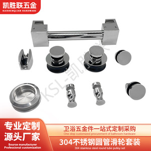 浴室ガラスドアセット304ステンレス鋼D25丸管ガラス引き戸吊り輪金具浴室ドア