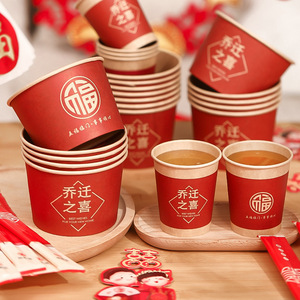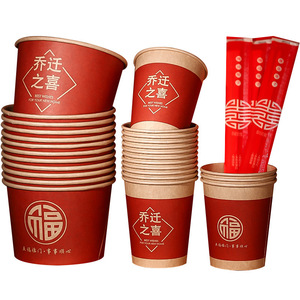 新居への引っ越しの喜び、引っ越し用品、使い捨て紙コップ、新築祝い、家族宴会、祝賀会用品