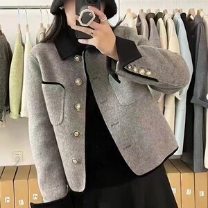 2025年新作 エレガントなショートコート 秋冬 シャネル風 多彩な着こなし 小柄さん向け ウール混紡コート 韓国風