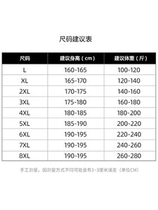 175(2XL):150斤以内