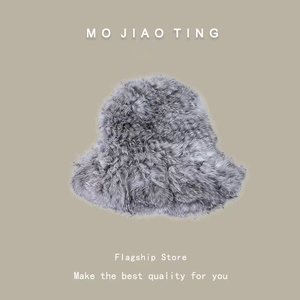 秋冬の女性のウサギの毛の帽子の子供の秋冬の金は厚くて暖かい防寒の毛糸の帽子は顔の小さい毛皮のぬいぐるみの漁師の帽子を現します。