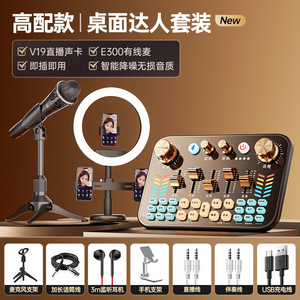 Jinyun [高構成] V19 サウンドカード + E300 マイク + サウンドカードアクセサリー一式 + デスクトップフィルライト