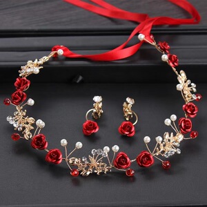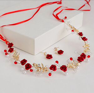 新婦の頭飾り2022新作森系中国式お祝い赤い髪飾り仙美髪帯敬酒結婚ドレスアクセサリー