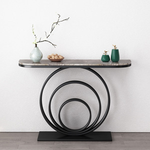 新中国式の鉄芸の狭いテーブルの玄関のテーブルの軽い豪華な大理石は壁の端の景台に寄りかかって入り口の玄関の戸棚に入ります。