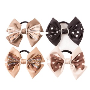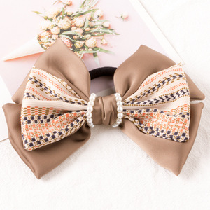 韓国版蝶結び二重真珠髪輪高級感サテン女性馬尾髪飾り