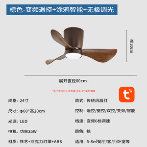 CT09-ブラウンモーター 24inch + ブラウン ABS リーフ + サポート Tuya 音声 + 周波数変換リモコン