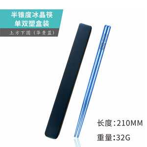 19CM (高級ブルー) アイスフラワー純チタン箸 プラスチックボックス
