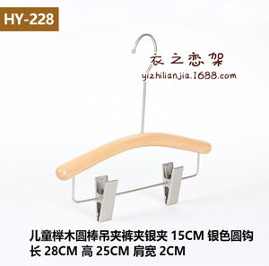 HY-228子供ケヤキ丸棒吊りクリップズボンクリップシルバークリップ15cmシルバーラウンドフック