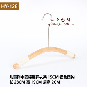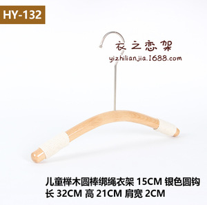 HY-132子供ケヤキ丸棒ひもハンガー15cmシルバー丸フック