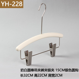 HY-228 乳白丸棒無垢材吊りクリップ ズボンクリップ シルバークリップ 15cm シルバー丸フック