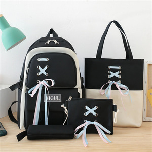 新しいナイロンのリュックサックの女性の韓国版の大容量の4つのセットの中学生のリュックサックのリボンの蝶結びのカバン