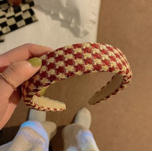 小さな格子の赤いカチューシャ