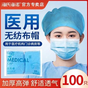 海氏海諾使い捨て医療用帽子医師看護師不織布通気防塵ヘッドカバー青い作業帽