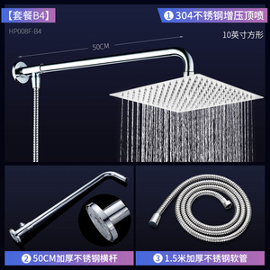 セットb4 10インチ304ステンレスf角型トップスプレー + 50cm厚さバー