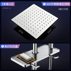 セットa2 8インチ304ステンレス角型トップスプレー + 穴なしトレイ