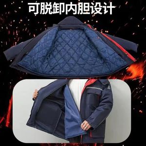 冬の作業服静電気防止綿服男性綿服は保温中長ガソリンスタンドの石化労働保護綿服を厚くしてカスタマイズした