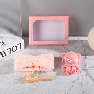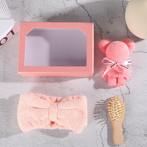 漫画のピンクの熊の少女の入浴セットのサンゴの毛の櫛のタオルの組み合わせの精巧な贈り物の箱の3セット