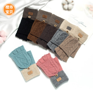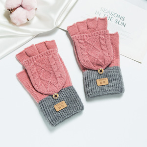 半分の指の手袋の女性の冬のカップルは指を出します。